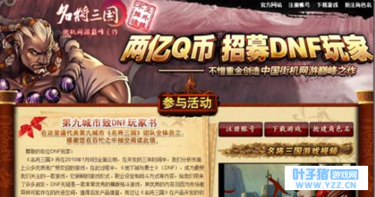 09年九城自己作死丢了WOW代理权,做了款叫《名将三国》的2D横版格斗游戏,誓要取代DNF。 随即在游戏官网发布了一条惊世骇俗的公告: 要用2亿Q币招募DNF玩家。