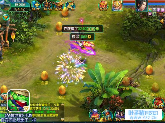 春节烟花 普天同庆 除夕夜后便是正式步入新年的大年初一,新旧更替之际,梦想大陆自然也准备了热闹精彩的迎新年辞旧岁活动!在2018年2月16日0:00-0:30期间,梦想大陆将有全屏烟花燃放,届时梦想大陆所有侠士均可获得“普天同庆”状态,同时更有金蛋满地等你开启!
