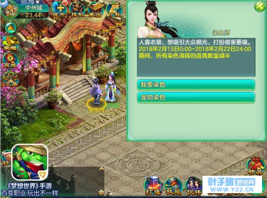 新年新装 半价染色 新年换新装,作为梦想大陆的侠士自然也需要在新年里换上崭新的形象继续闯荡梦想世界!即日起,所有侠士前往中州城染色师处染色,消耗的道具数量均会减半,趁此良机,各位侠士还不快为自己换上新装迎新年!
