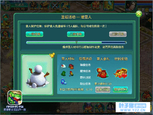 圣诞堆雪人 组队保护雪人 除了打雪仗,堆雪人也是冬日里经典的欢乐记忆,这样欢乐的玩法梦想世界手游也当然不会错过!侠士们可以在日常任务中获得雪人道具,每个区上交的雪人道具越多,就能开启越高阶的雪人保护任务。当然,高阶的雪人任务奖励也更加丰厚,快和小伙伴们在日常活动中多多堆雪人,然后保护雪人拿奖励吧!