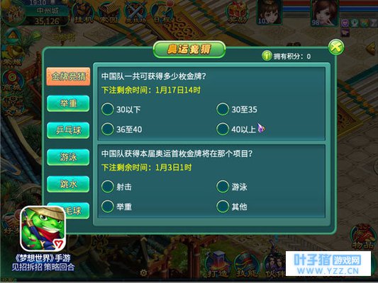 《梦想世界》手游全新内容“夏日大冒险”已正式开启,在全球瞩目的里约奥运举办期间,《梦想世界》手游更是特别推出5大奥运专属活动以及3大全新玩法,可谓精彩不断,今天就让小编我来为大家简单介绍一下这四个奥运活动,看看到底是怎么一个玩法吧! [推荐新服]iOS安卓跨平台新服:避暑山庄 《梦想世界》手游官网:http://mxsy.duoyi.com/ 竞猜金牌为中国队加油 为迎接奥运会,《梦想世界》手游特别推出奥运竞猜活动,奥运竞猜活动开启期间,玩家们每周获得活跃度的同时将获得对应数值的竞猜积分,共有多个不同的奥运题目供侠士们通过积分下注竞猜,正确猜中相应的题目将获得双倍的下注积分奖励,活动期间竞猜积分能兑换丰厚的奖励。