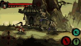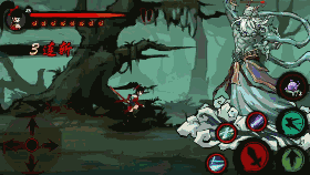 操作方面使用虚拟摇杆控制方向,右手则控制闪躲、跳、以及三个主动技能加一个道具。作为一款主打战斗的手游,这款游戏的战斗系统也比较有意思,小怪没有霸体属性,掉在地上也可以继续连击,通过空中突进的使用可以形成近似于无限连击的感觉,整体上来看给人感觉比较流畅,战斗爽快是最大要素。无限连击是每个玩家的梦想啊!