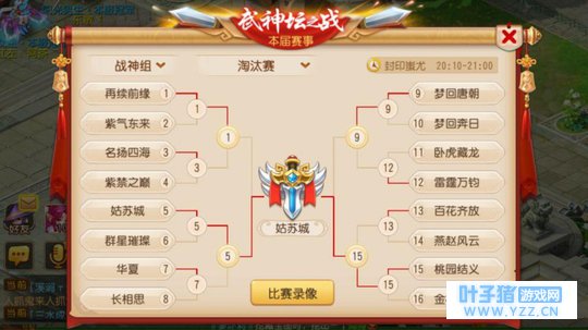 面对这种局面,再续前缘则抓住机会迅速削弱名扬四海的团队战斗力,开始占据主动。虽然之后几个回合双方各有来回!但掌握了先期优势的再续前缘将优势逐渐扩大,并且一直保持到了比赛结束,最终名扬四海只能黯然出局。 半决赛:【 桃园结义 VS梦回唐朝】 在半决赛中,处于下半区的桃园结义与梦回唐朝展开厮杀。战斗一开始,幸运女神就站在了桃园结义一方,桃园结义的月宫躲过了第一回合的点杀之后,有了足够SP丢出罗汉金钟,成功完成了自己的使命。