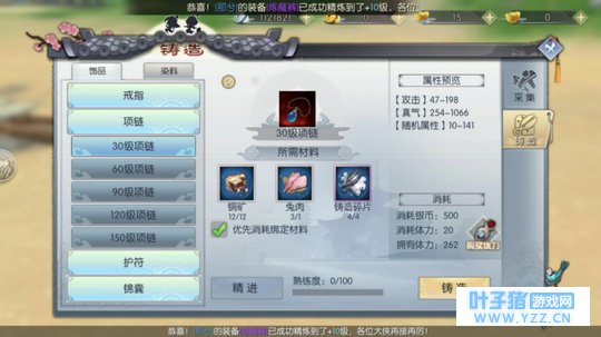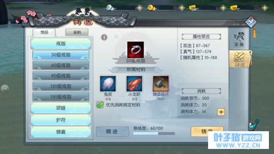 不过虽然用不绑定材料铸造的作品可以交易,但一旦装备饰品后,就会变成绑定的哟~而且每一件饰品的打造都需要消耗体力值,等级越高消耗体力值也就越高。Emmm说了这么多,是不是想马上到游戏中感受一把能打造绝世饰品的人品?