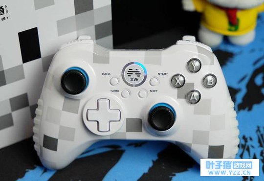 手柄的左侧设为摇杆和十字方向键,左侧手柄上下分别设有LS动作键和TURBO功能键,这按键的设计主要针对游戏中自定义一些连招而设定,细节的用户可以注意到,在北通的LOGO进行了一些调整,LOGO设在手柄上方位置,相比前面的设计更为醒目。