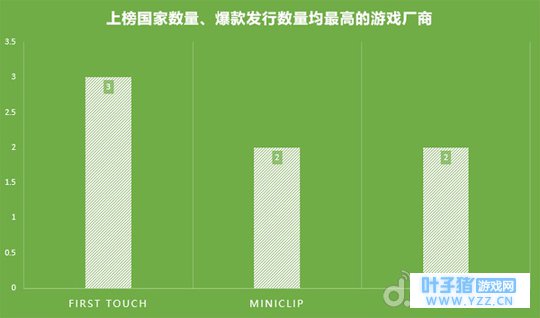 其次上榜5国排行榜的游戏为:《Football Strike》(爆炸足球)、《Score! Hero》(得分英雄)、《足球经理人-赢取冠军》(Top Eleven)以及《实况球会经理人》,值得一提的是《Top Eleven》是塞尔维亚游戏厂商Nordeus的代表作,产品于2011年发行,到现在运营已7年,却依旧受欢迎。 上榜国家数量和产品发行数量最多的游戏厂商:英国“First Touch” 而在八国家榜单中,上榜爆款手游产品最多的游戏厂商是英国的First Touch,该公司旗下有3款产品进入超过4国的榜单,《Score! Hero》更是成为俄罗斯、德国、巴西、比利时以及英国的畅销产品。上榜产品数量和国家次数较次的游戏厂商是瑞士的Miniclip和日本的KONAMI,前者有2款手游登入至少两国榜单,《Football Strike》(爆炸足球)已成5国榜单常客。后者的《实况足球》系列:《PES 2018 PRO EVOLUTION SOCCER》(实况足球2018)上榜4国榜单,《实况球会经理人》进入5国榜单。