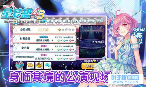 【指尖上的星梦剧院】 公演是SNH48 GROUP的传统,成员们每周都会在“星梦剧院”举行主题公演,其中不乏许多经典的神级公演。《星梦想48》遵循公演流程,将SNH48 GROUP公演与打歌玩法相结合,让游戏成为指尖上的随身“星梦剧院”。想看公演了?打开《星梦想48》看《心的旅程》吧,每周五重置进度!