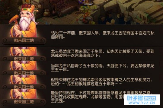 说做就做,灵儿跟踪了偷偷怪,看到偷偷怪悄悄去了海底,本以为他要找沉船,没想到他去的是另外一个地方,而那里竟然束缚着一条龙,真是非常古怪。这是怎么回事?本着打破砂锅问到底的原则,灵儿采访了傲来国土地神。