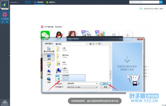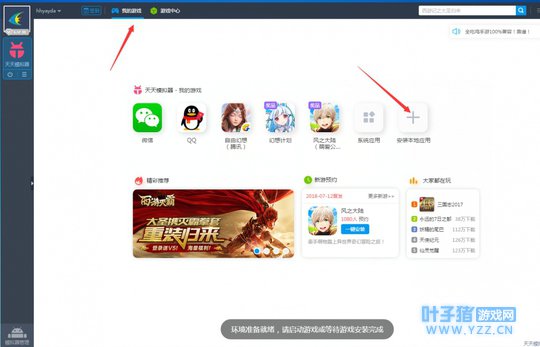 3、接着在模拟器我的游戏界面,点击一下安装本地应用,把桌面上的剑侠世界2安装包添加到模拟器里面!