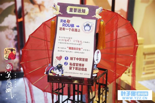 图5《新笑傲江湖》展区内人气高涨 《新笑傲江湖》的精美展区吸引了在场诸多玩家的关注,人气高涨,络绎不绝。手游官方团队特为前来参观的玩家准备了一系列精美周边:机械键盘、定制酒壶、教主猫钱包、清凉扇等精美周边,玩家只要在现场进行简单的互动便可获得这些实用又有趣的周边。