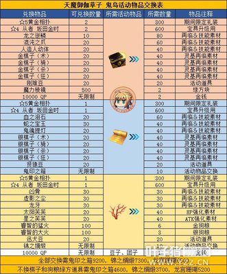 这次的鬼岛活动奖励非常丰厚,包括了大量用来突破的素材,很多玩家稀缺的突破素材都可以在这次活动中获得,这里小编非常推荐大家能把这次的奖励全部都兑换完。 以上就是叶子猪小编带给大家的“FGO鬼岛活动兑换材料攻略”的全部内容,更多fgo手游内容,请进入专题:http://www.叶子猪.com/fgo/ [编辑:叶子猪小秘书]