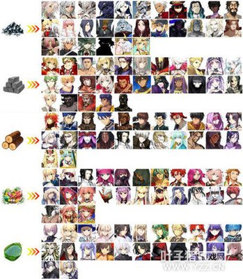FGO迦勒底夏日回忆兑换表 一、前期准备在开始推图前,最好根据自己仓库的实际情况,参考下图设定三个队伍。 1.建材队(对应地图:洞窟/密林/草原): 从拓展任务1到12均需要大量的其中一种建材,因此需要一种由单一建材bonus组成的建材队。 建材队有三个主要方向,木材线,石材线和铁材线。 因为目前没有发现修建不同种类的小屋对后续刷图有什么影响,而且日穿第八节后现有小屋还可以推倒重建,所以修建哪种小屋并不重要,主要还是根据自己仓库情况选择一条线。 木材队和石材队可以搭配一到两个食材bonus的从者,铁材队可以搭配一到两个真水bonus的从者。 四个高练度从者加上两个划水凑数的从者足以应付雷级(lv80)的自由本。 这三条线中,首推木材线,因为木材线在拓展任务1-10当中均只需要木材这一种建材,并且需要的真水和食材较少。 而石材线仍需要少量的木材,同时真水和食材消耗较多。 最不推荐铁材线,因为铁材线仍需要大量的木材和少量的石材。 2.食材+真水队(对应地图:海滩): 从拓展任务三到拓展任务九需要消耗一定量的食材和真水,因此需要一支食材和真水bonus从者组成的混合队伍,刷海滩满足这一部分的需要。 其中木材线需要的真水较多,可以以四个真水bonus从者搭配两个食材bonus从者。 石材线需要的真水更多,可以以五个真水bonus从者搭配一个食材bonus从者。 铁材线需要的食材较多,可以以2个真水bonus从者搭配4个食材bonus从者。 同样,四个高练度从者和两个划水从者足以应付海滩雷级(lv80)的自由本。 3.山地雷级队(对应地图:山地) 拓展任务13之后,所需素材变为大量的三种建材,因此同时大量产出三种素材的山地雷级成为刷素材的最佳地点。 山地雷级关底boss为接近三十万血的骑阶大龙,对队伍的压力较大,而大部分的优秀杀阶从者集中在真水bonus。 因此为应对大龙可以携带1-2名真水bonus的杀阶从者(如214,杰克)或孔明。 [编辑:叶子猪小秘书]
