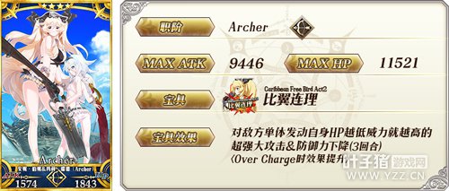 双子的优点就是优秀的三个技能、损血增伤的宝具,以及随之而来的强悍的爆发输出能力。虽然控血有一定的难度,但因为多了战续效果所以在应对狂阶敌人的时候能有格外强大的爆发力;而即使不靠损血加成,实用的加攻和暴击技能也能让双子打出足够高的伤害。 实战中可以单纯的将损血增伤看作锦上添花,只靠合计高达44%的三回合加攻技能来增幅输出;因为弱体耐性DeBuff危险性并不高,所以在这样的定位下双子可以说没有短板。比起骑阶版本的双子,弓阶版无疑有更高的实用性与泛用性。 [编辑:叶子猪小秘书]