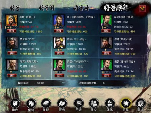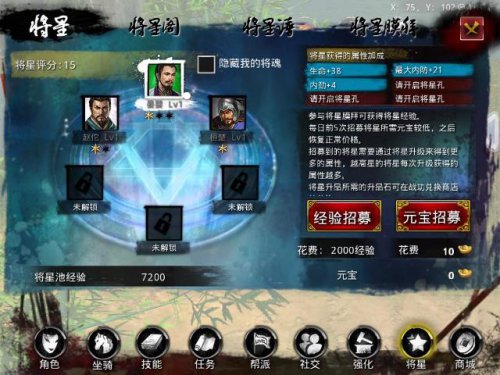 《刀剑天下》,来自指尖上的传奇,用血性征途天下! 全球首款3D玄幻即时强PK手机网游《刀剑天下》重磅来袭,端游品质,手游呈现!拿着手机体验经典传奇,躺在床上用IPAD再续征途.。 以秦末时代楚汉双雄争霸为历史大舞台的《刀剑天下》,拥有扶苏、蒙括、孙膑等近200个名将复活,供您差使。众多名将对玩家各种属性进行加成,提高玩家的战斗力,更有17种将星套装华丽助阵。 《刀剑天下》获得将魂将星分为:白色,绿色,蓝色,粉色,金色,分别对应:平庸、一般、优秀、完美、传说。越靠后的将星招募几率越小了。为助玩家拥有更强大的战斗力,《刀剑天下》将星全面攻略在此奉上: 揭秘将星招募 巧用方法获加成 将星招募共有三种方式。经验招募:只要花2000经验就可以招募将星,招募到的将星好与坏,就看个人人品了!将星召唤书:参加相关战役获得,如“重黎将星帝殿”,挑战重黎,根据击杀重黎的强弱,来确定获得的将星级别。元宝招募:RMB玩家的康庄大道,花10元宝就可以招募将星。 将星还可以通过升级,来提升加成属性的数值和范围,经验可以通过“将星膜拜”等活动获取,亦可以从通过关战役获得! 每个职业需求的加成属性不同。武者属物理近攻职业,所以关键属性是:外功,血,内防,外防,暴击,命中。术士、影士、药师则要求:内功,命中,闪避,暴击,内防,外防等比较高。