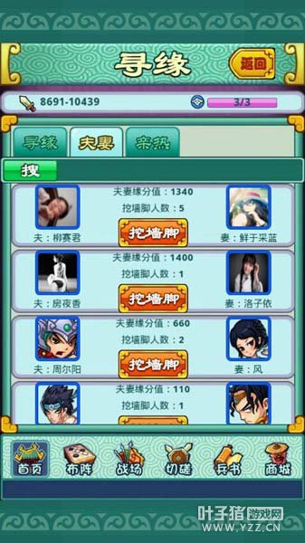由骑牛游戏独家代理的Q版卡牌手游《进击的三国》已于11月6日开启二次封测,适逢光棍节,系统君为“脱光”众击友,使出浑身解数,在三国大搞联谊,收获红心一地。未得到妹子宠幸的击友也不必失落,快发散你的荷尔蒙,系统君已为你自毁三观,准备传你抢妹秘技——挖墙脚。 在三国流传着这样一句话,好吃不过水饺,好挖不过墙脚。与妹子擦肩而过的击友们还在苦苦等待什么?正所谓不在单身中变坏,就在单身中变态。已然黑化的击友,不妨化身Boss,铲除“前夫”,将妹子强行占有!锄头一出手,便知有没有,作为个中老手,系统君将又一次放下自我,为玩家亲身示范“挖墙脚”神技。 在《进击的三国》中,单身击友的锄头可以指向任意夫妻,针对任意夫妻实施挖墙脚。但根据游戏设定,击友的锄头是个德智体美节操全面发展的好少年,它在同一时间只忠实于一对夫妻的墙角。所以如果击友想要凭借自己的小身板,同时对多对夫妻发起挖墙脚行动,那几乎是不可能的。 同样根据设定,一对夫妻可以同时被多人挖墙脚,一旦夫妻之间的缘分值被挖至零,则夫妻关系解除,所有挖墙脚的玩家中缘分值最高的玩家将与原妻结成新的夫妻。这就意味着纵使夫妻俩情比金坚爱比海深,如果夫婿不具备守候妻子的实力,那么沦为下堂夫不过是迟早的事。想要爱的长久就登录官网(www.eqiniu.com)论坛,进击更多夫婿成长攻略吧。 穿过你的黑发我的手,瞄准你的墙脚我的锄,光棍逆袭,前夫靠边站! 游戏相关 《进击的三国》是一款由骑牛游戏独家代理的Q版三国卡牌手游,游戏一反传统设计理念,融合穿越、吐槽、摇滚等时代元素,对三国人物、三国历史进行多维度诠释,以驰骋沙场,收获武将,赤炼兵器,情缘社交为核心主线,引领卡牌手游新风尚。游戏强大的穿越机制,新潮的卡牌组合,养眼的UI设计和千奇百怪的触发技能都能令玩家耳目一新,获得无限乐趣。 [编辑:Vince]