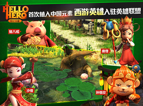 游戏品质是毋庸置疑的,细节之处更是精雕细琢。《Hello Hero》为了迎合更多中国玩家的口味,还将大家从小就耳熟能详的著名巨作《西游记》中唐僧师徒四人的角色加入了游戏中,给大家带来了强烈的人物熟悉感。另外在游戏的表现力度上也有着全新的突破,采用Unity3D引擎打造的特效能够让玩家感受到更猛烈的打击感和更深入的代入感。