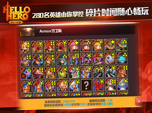 在《Hello Hero》中有着200多个英雄角色,喜欢养成类的玩家可千万不要错过它。这些英雄职业分为攻击、防御、治愈、全能四大类型可以自由选择,还能够针对他们不同的特性来打造不同策略的战斗队伍。另外,英雄们还可以被合成强化和修炼,以提高自身的能力。