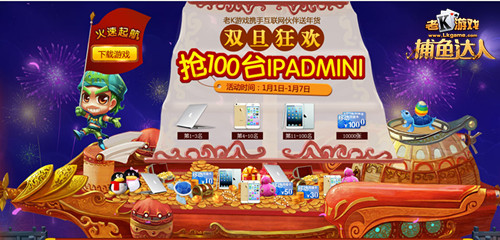 元旦将至,老K游戏《捕鱼达人》元旦七天乐大赛马上就要启动了!面对100台ipad的深深诱惑,各位小白选手是不是开始手足无措了?担心没比赛资格,担心被技巧没胜算?老K游戏《捕鱼达人》技术宅小编大手一挥,三招技巧全方位拯救小白,ipad手到擒来,一起来学习下! 捕鱼跨年最有爱,Ipad mini快到碗里来!老K游戏《捕鱼达人》元旦七天乐新赛季即将启动,详情请点击:http://www.lkgame.com/activities/shuangdan/