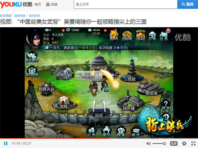 最美武警与你共享指尖激情 挑战你的神经,考验你的智慧,千变万化的战斗手法,战局由你控制,打哪里怎么打你说了算! 真正即时操控,征战三国谁主浮沉? 还不懂?有视频有真相——“中国最美女武警”吴雯琦陪你一起领略指尖上的三国: |