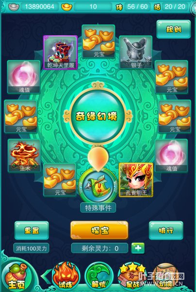 2013即将过去,新的一年正在向我们走来!全新一年,全新惊喜。网易首款卡牌手游、首款西游题材手游《迷你西游》准备了系列趣味元旦活动,与大家一起迎接全新2014的到来。更有高级装备、高级法术,以及海量元宝、银两等你来拿!此外,元旦还有全新玩法上线! 活动时间:2013年12月31日维护后至2014年1月3日晚12点 1、幻境探宝遇奇缘 活动期间,在活动中新增“奇缘幻境”玩法,玩家可以在幻境中自由进行探宝,探宝需要消耗灵力,灵力可以通过赚取活跃度的方式来获得,也可以直接通过元宝兑换,在幻境中可以探得各种宝物,还能遇到突发事件哦。幻境中宝物种类极其丰富,银子、魂值、元宝、护法、装备、法术均有海量掉落,包括五星护法、五星装备和五星法术!每次探宝还能获得积分,服务器积分最高的10名玩家还将额外获得“法术秘录”物品奖励! 2、欢乐嬉闹丢雪球 活动期间,玩家进行任意战斗(除好友切磋)均有可能获得“雪球”道具。玩家点击使用雪球道具,即可选择砸向哪个好友,成功砸出雪球后双方将同时获得奖励。奖励包括银子、元宝、宝箱,还有可能砸到5星装备和法术哦! 3、财福寿禄齐贺喜 在活动期间,突发事件中将增加财、福、禄、寿设下四大仙阵试炼供玩家挑战,四个试炼每日开启一种,赢得挑战即可获得请神符奖励,试练难度越高奖励请神符数量越多!此外还有丰富元宝、银子、魂值以及护法经验等奖励掉落。 仙阵每天晚上12点重置变更,每个仙阵分为下、中、上3个级别,每日各级别试炼可以通过3次,需从下级到上级依次挑战。当玩家击破某仙阵上级阵后,将会开启该阵的究极模式。究极模式中,每通过一关,试炼守卫就增强一次,最多可以通过10次。 4、搜集线索开礼包 在活动期间,任意战斗除切磋均有几率获得“礼包线索”,3星通过仙阵试炼可以获得“礼包素材”。凑齐一定数量的礼包线索和礼包素材,即可开启元旦大礼包哦。 活动开启后,道具中新增“元旦红包”和“元旦礼包”,玩家可消耗一定材料重复开启,开启时间截至2014年1月7日早8点。 《迷你西游》目前正在进行iOS越狱不删档内测当中,内测客户端下载方式(需持iOS已越狱设备):打开91手机助手、PP助手或者同步推任意一个工具,搜索“迷你西游”下载安装。 《迷你西游》官方网站>>http://xym.163.com/ 《迷你西游》官方论坛>>http://xym.netease.com/ [编辑:Vince]