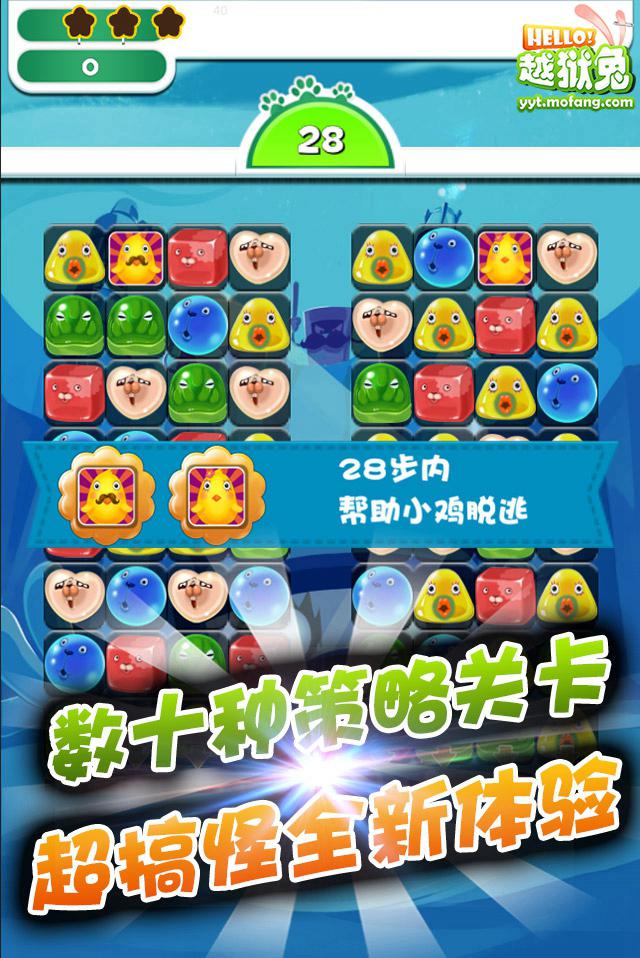 激情搞笑的疯狂越狱、呆傻卖萌的两只兔子、奇形怪状的监狱守卫,这些情节是不是让你耳熟能详呢?。今日,爆笑搞基三消手游巨制《hello!越狱兔》隆重登场,惊险刺激、爆笑搞基的精彩之旅即将在手机上开始,你准备好了吗? 官网地址:http://yyt.mofang.com 价值199元超值大礼 火热派发中 豪礼送不停,福利永不断!《hello!越狱兔》一直以来都得到广大玩家的一致认可和支持,为了回馈玩家对游戏的厚爱,《hello!越狱兔》为忠实拥趸们准备了精彩的福利,登陆官网参加提前预定活动和参加“我是越狱达人”活动,都有机会获得精美越狱兔公仔一对和惊喜好礼。 |