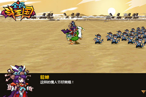 全新兵种威力无边 帮你赢胜利 《全民斗三国》情人节新版中加入的不止有两员大将,还有两个全新兵种也开放给玩家——铁蛮营及蜀飞营。铁蛮营与蜀飞营皆属于近战兵种,蛮族兵。其特点为高攻击力、高特效触发及自带暴击。特效触发时,铁蛮营将释放一个雷属性的狂龙八斩;而蜀飞营则在自身周边释放一圈旋刀阵。论实力这两个兵种不相上下,究竟如何选择,就看你的搭配方法了。 情人节上线领元宝 送你好福利 情人节期间,《全民斗三国》可不止有无双吕布、红颜貂蝉和新兵种加入,还有更多精彩活动,让你体验真正的全民情人节!只要活动期间每日登录游戏,就能领取丰厚奖励,还有元宝等着你,真金白银千万别错过!同时,如果你在情人节期间获得了无双奉先和红颜貂蝉,还有额外奖励可以拿哦,简直一箭双雕! 情人节活动有双倍 让你爽到底 情人节只有无双奉先和红颜貂蝉,还不够爽么?怕武将升级慢,怕金币不够用?怕个毛线,情人节期间,各种活动开启双倍经验和金币,让你升级赚钱两不误。全民情人节,这下爽到底了吧! 《全民斗三国》情人节新版的新武将无双奉先、红颜貂蝉已准备好加入你的阵营;铁蛮营、蜀飞营两大全新兵种也要为你效力!情人节期间还有更多精彩活动等着你,如此好玩的三国,不来斗一下么? [编辑:F.L.S.D]