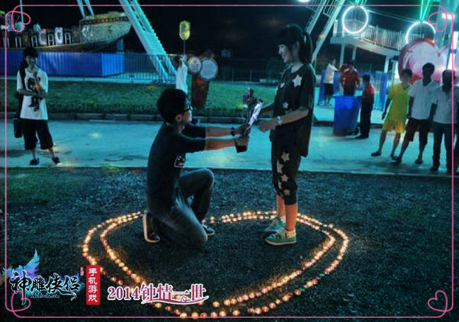 真想说年轻就是好啊,这一对情侣显然已经深切的领略到了秀恩爱的精髓。心形蜡烛,玫瑰花,跪地求婚……这一连串的招数使出来,只要那个妹子对你稍微有些意思,基本都会被攻克下来的。难得参赛的童鞋有心,记录下了这温馨甜蜜的一刻,让你们的爱恒久的流传下来。 下面这位侠士,他真的养了一只“雕“,虽然是只鹦鹉COS的,但好歹都是鸟!只是神雕侠侣变成了鹦鹉侠侣,咳咳,总觉得有些别扭。并且,重点是,同学你拿电脑屏幕上的《神雕侠侣》游戏海报充数当做”情侣“,这样真的好么?!不要孤单一个人啦,赶紧找个女朋友,来拍一组真的情侣POSE吧! 这位同学虽然很有创意,但是不得不说,这是我见过的最懒的情侣照了!一是在于这位同学直接把95《神雕侠侣》电视剧中过儿的衣服给PS过来了,二是在于你PS也好歹专业一点嘛,只移花接木了一套衣服,敢再PS个妹子过来么?不然怎么能算情侣照呢? 愿得一心人,白首不相离。可是这位童鞋,你这么左拥右抱坐享齐人之福是要闹哪样?在广大男同胞都哀叹找不到妹子的时候,亲你一下子占据了两个,左边的妹子冷艳成熟,右边的妹子甜美可人,真的不觉得自己有些“过分”么(不会承认这是在羡慕嫉妒恨的,哼……)。 |