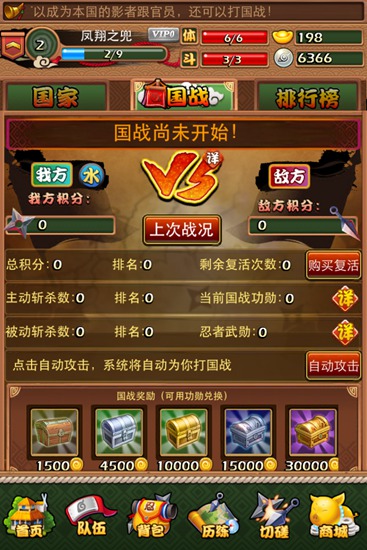 走向佐助的可疑人物到底是谁?四代面对斑将如何拯救鸣人?捡到六道神器的凯之小分队又将如何左右战局?火影剧情扣人心弦,但《火影大人》国战抢位大戏更是经常连连!近期将有大版本更新,更多玩法更强国战! 《火影大人》官网:http://hydr.zqgame.com/ 《火影大人》最给力活动,国战天天开启,以下来看看具体玩法。国战是火影大人里互动性比较强的一个环节,每晚19:30准时开启,历时1个小时,战胜国每个队员可以领5000银币,这也是整个团队协力的收获。除了上述的奖励,国战对于玩家个人而言,好处也有很多,最大的就是大量经验,大量的国战功勋,国战功勋可以累积兑换国战下面的各种宝箱,神马5星装备、5星忍者卡应有尽有。 但最好玩的,还是《火影大人》国战的抢位子玩法,也就是官员争夺战。每个国家都设有1个影、2个护法,4个长老的职位,每个玩家都可以凭借自己的真实实力去竞争以上的位置。只要在上面呆满了24个小时,就可以获得该职位的官员礼包,特别给力哦! 抢位子小技巧:1、一般来说,火之国的实力派玩家比较多,因此竞争激烈,必须是骨灰级玩家才有希望。如果你不幸身在一个大国,可以通过转国籍来改变归属地。宁当蛇头,不当凤尾! 2、抢位置需要看自己的攻击力,而守位置则是看自己的防守力,因此如果想要获得官员礼包,最好是准备两个卡组,一套攻击一套防御。如果卡牌较少,则可以攻防个半,主升5星卡。 3、搞好关系也是一项获得官员位置的渠道。在别人快到坐满24小时时不要手贱去抢,以免结怨。游戏中还有些土豪大神卡牌已经很牛逼了,抢官员就是玩玩而已,因此玩家可以在QQ群吼一吼,跪求大神放你一条生路,给你个官员当当。 各位玩家期待近期《火影大人》的大版本更新吧,国战也将更为丰富哦! 《火影大人》官网:http://hydr.zqgame.com/ [编辑:F.L.S.D]