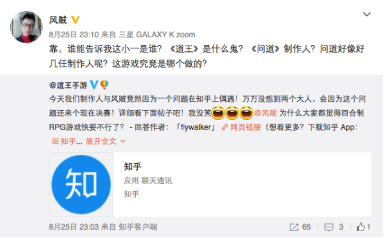 如果仅仅是在网络上隔空对喷,也许这次事件就到此为止了。谁知昨晚,小一在知乎上公开邀请风贼参加自己参与制作的游戏——《道王》的品鉴会。你说我不现实?我直接给你上干货!