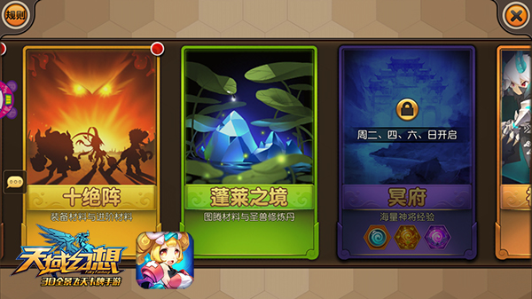 在《天域幻想》“开学新版”中,统帅们达到46级就能开启蓬莱之境,从主城的幻境中即可进入该玩法。蓬莱之境一共分为三大部分:生产、掠夺以及复仇,主要产出圣兽修炼丹、图腾之力、图腾突破石、金币以及经验值。