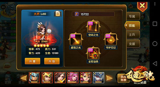 初见科技出品三国攻防战略手游《乱轰三国志》为你打造最真实的三国战场,百位三国名将辅佐你开疆拓土,创立霸业。目前,《乱轰三国志》中最炙手可热的武将当属大乔。作为三国时代倾国倾城的绝世佳人,大乔在《乱轰三国志》中是一个全能计策型武将,拥有不错的控制能力与辅助能力,在战队中拥有举足轻重的地位。那么如何培养大乔是一个非常重要的课题?今天,咱们就来简单说说大乔的培养与搭配技巧吧! 培养:技能是关键 武将的养成可以从等级、星级、专属、技能、士兵、支援、装备等多个方向来培养。想要大乔发挥更大的自身优势,技能是各位玩家不能忽视的方向。大乔的四个技能:空间之光、虚弱之光、守护印记、全军动员均能体现大乔对近身输出武将近乎完美的克制,建议全部练起来。 搭配: 武将与武将之间的搭配是战场上致胜的法宝。针对大乔的自身特点,可以放在中排的位置上,前面带上一坦克一骑兵,后排带个奶和输出足以。当然,武将的阵容搭配是千变万化的,欢迎玩家来分享。 大乔虽然是一代倾国倾城的佳人,但是你可千万不要小看她,好好培养大乔、搭配大乔,战场上将会有更多惊喜。 |