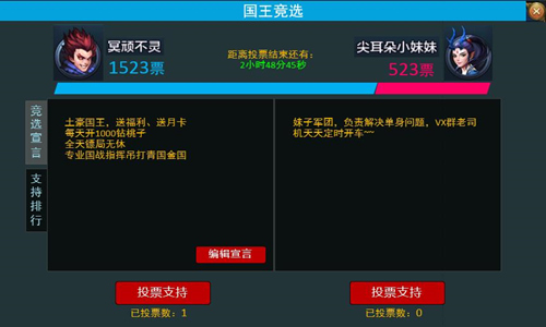 纵观中国古代历代王朝兴衰,成王败寇,成为人上人的从不问出身。在弱肉强食的妖族中更是如此!公平而残忍,但这样才痛快!《大圣之怒》全新版本将于19日盛世来袭,国王玩法随之登场!你将亲身上演从小妖到妖王的逆袭!现在就让小编带大家先睹为快! 要想成为一国之主,并非是一蹴而就的事,一步步往上爬才是千古不变的定律。所以你首先要在所在帮派中脱颖而出,成为一帮之主。帮主可在每周一到周四18点前,花费300钻石报名选举国王,排名将以竞选资金进行计算。18点时,在排名第一的参选帮主将与原国主参与投票,获胜者则可成为新的国王。 残酷的国王竞争,玩的终究还是钱的游戏。但这里的钱,当然是一帮之主以无比号召力,对帮众国民募集的资金。当然,作为国王对全民的公信力也至关重要。因为最后一轮与现任国王的对决可是必须要靠广大国民实打实的投票!参选者可以发表竞选宣言,至于成败与否,就看你在大家心目中的魅力了。 国王玩法三言两语当然说不清,后续小编会为大家详尽报道!接下来为大家带来的是,新版本即将登场的全新系统——坐骑!身为妖族的你,将会驾驭三界最强的酷炫神兽,遨游天下!实现颜值与实力的双飙升!随着新系统还有春季特别坐骑即将登场!敬请期待! 《大圣之怒》全新版本将于19日王者降临!全新国王玩法,坐骑系统,春节福利都将一同来袭!马上进入《大圣之怒》的奇幻世界,全新一段妖王旅程为你开启! 【关于《大圣之怒》】 《大圣之怒》是由星辉天拓自主研发的西游后传动作手游。游戏讲述了一个全新的西游后传故事,玩家将在游戏中体验万人同屏的激烈国战,唯美精致的3D画面,爽快酣畅的PK对战!重度角色养成,神将组合策略,多元玩法打造更为精彩的动作游戏体验! 了解更多相关信息,请前往http://sy.yzz.cn/ku/dszl/ |