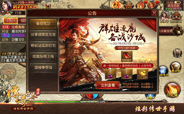 痛快战,炫出彩!腾讯与盛大游戏携手打造、兄弟柳岩倾情代言的官方正版《传奇世界手游》炫彩不限号火热进行中!在传世大陆上,战斗PK无疑是勇士们最热衷的事情。从野外自由PK,到领地争夺,到行会争霸,再到即将于本周日打响沙城争霸……你可曾记得当年在沙城与兄弟并肩拼杀的时刻?你准备好再次成就沙城荣耀之名,问鼎桂冠了吗?此外,《传奇世界手游》骑战版本即将于公测开启,集结签到得奖励! 满满回忆,看哭了1亿传奇兄弟: https://v.qq.com/x/cover/20lmjz50eej584n/a0022dackgc.html 满满情怀,传世炫彩带你回味昔日感动 随着《传奇世界手游》首次攻沙的即将打响,游戏于近日公布了一则情怀短片,讲述玩家们在游戏中所经历的“炫彩”之事。回顾过往,你是否还记得——攻沙时,兄弟们此起彼伏的呐喊?中州、土城、炼狱等各个要塞地图的支援请求?是否也曾忆起——释放狂龙紫电后,屠龙、裁决等极品装备掉落时惊喜的瞬间?炫彩多姿的传世生活,一个又一个鲜活的故事,都映衬着玩家们对于打宝、对于战斗的渴望。 在传世大陆上生存,最重要的人无疑是并肩作战的好兄弟。他们或许是为你赠药的那个路人,也可能是升级之路上帮你砍怪护航的挚友……打团战时,彼此通过语音激情呼喊;被爆装时,有随叫随到的师傅,他们都是情义的最佳象征。练级、挖矿、打宝,走遍中州、荒漠、禁地,陪伴在你身边的身影,无疑是最值得珍惜的感情。从落霞岛看遍桃花似锦,许一世深情,也许你与她只是萍水相逢,但一场游戏姻缘,一场华美婚礼,就是一段美好的佳话。激情、惊喜、感动、情义、悸动……这就是属于你的炫彩传世! 全民骑战公测开启 签到集结赢好礼 在炫彩情怀视频公布的同时,《传奇世界手游》宣布全民骑战版本即将与公测同步开启,开启了签到集结赢好礼活动。即日(2月24日)起至公测开服期间,玩家每日都可前往官网指定界面进行骑战集结签到,领取金币、绑元、铁矿、天山雪莲等在内的丰厚游戏好礼。累计签到达5次、10次、15次、20次后,还可额外领取福利礼包;而当所有的传世玩家签到次数满25万、50万、75万、100万后,更可开启对应的礼包领取奖励!快召集兄弟们一起签到领奖吧! 周日开启热血攻沙 最高荣耀之战即将打响 对于《传奇世界手游》的玩家而言,沙城是所有勇士们追求的至高荣耀。激情、乱斗、战术、人海……种种团战元素均可以在这场战役中看到。全服各大行会在历经领地争夺、中州争霸后,战意均已攀至巅峰。《传奇世界手游》首次攻沙的即将于本周日(2月26日)打响,谁将率领兄弟攻占沙城,成为新一届沙城之主;哪位行会会长可以骑上黑豹在中州城中耀武扬威,绝对值得期待! 沙城争霸不仅是对玩家们的战力的考验,更是对行会整体作战能力、指挥规划等各项综合能力的考验。战前各个行会务必备齐物资,合理调配职业。无论是负责冲杀的战士,还是给予致命一击的法师,以及专修辅助的道士,都缺一不可。团战中何时扎堆推进,何时封门死守,都是值得权衡的战术体系。而最终想要赢得战斗,还是得靠兄弟们团结一致,听指挥号令! 痛快战,炫出彩!《传奇世界手游》诚邀勇者进驻,与兄弟柳岩一起并肩作战。全民骑战公测开启,签到就赢好礼! 了解更多相关信息,请前往http://sy.yzz.cn/ku/cqsjsy/ |