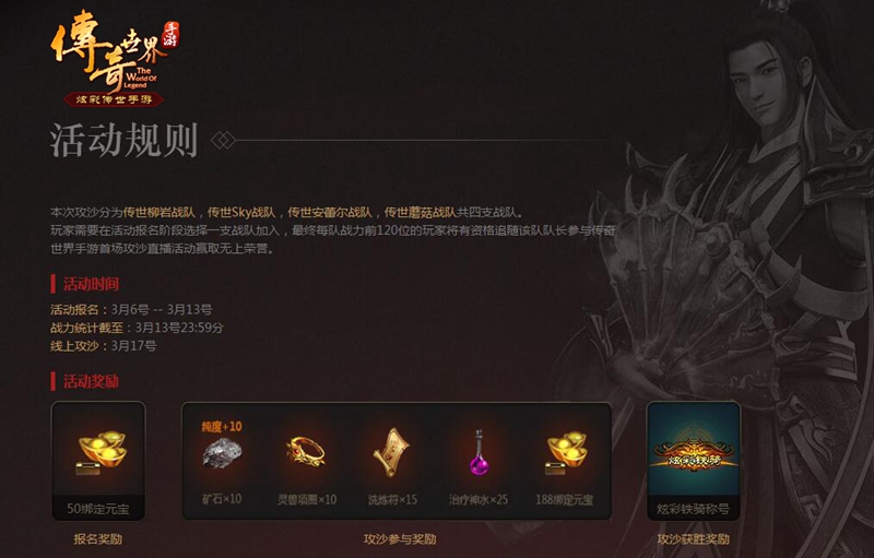 痛快战,炫出彩!由腾讯与盛大游戏携手打造、兄弟柳岩倾情代言的官方正版《传奇世界手游》全平台不限号火热进行中!继情人节约战后,柳岩再度向《传奇世界手游》的勇士广发召集令——3月17日直播攻沙首秀,和兄弟柳岩一起开启全民骑战,战出传世爽快! 兄弟柳岩领衔 广邀众群雄集结攻沙! 3月17日,《传奇世界手游》将迎来首次骑战直播攻沙首秀,兄弟柳岩、人皇Sky、安蕾尔、牛小蘑菇四大明星玩家领衔,打造2017年最热血刺激的巅峰攻沙之战! 本次攻沙,将分为四大传世战队,由兄弟柳岩为首的四大明星玩家分别担任相应的攻沙队队长,号召最勇猛的英雄加入其麾下,与TA一起攻破沙城!你想加入谁的团队,和谁一起共享沙城繁华?赶快参与报名,一起问鼎沙城宝座! 即日起至3月13日,各位勇士可选择心仪的战队参与报名。在报名活动结束后,最终每队战力前120位的豪杰将有资格追随该队队长,参与《传奇世界手游》首场攻沙直播活动,赢取无上荣耀称号!为了助力众勇士,官方也特意准备了绑元、洗炼符等丰富奖励,参与攻沙的勇士均可获得! 巅峰之战全程直播 谁将问鼎沙城宝座? 作为首场攻沙巅峰之战,《传奇世界手游》与全网14大直播平台合作,为广大玩家直播这一巅峰赛事!而未能参与这一王者之战的玩家,也可以通过直播的方式第一时间见证沙城新城主的诞生。此外,攻沙战前夕,众玩家还可参与王者队伍竞猜,看谁才能登上城主宝座。竞猜正确的玩家即可领取海量豪礼! 痛快战,炫出彩!《传奇世界手游》3月17日骑战攻沙首秀,无上荣耀等你来。赶快前往官网cqsj.qq.com报名,与兄弟柳岩、人皇Sky一起战出传世爽快! 了解更多相关信息,请前往http://sy.yzz.cn/ku/cqsjsy/ |