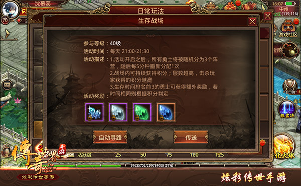 由腾讯与盛大游戏携手打造、柳岩倾情代言的官方正版《传奇世界手游》全新版本“3V3决战巅峰”现已荣耀开启!激情畅爽3V3战队争霸赛首个赛季火爆开打,神兵深度养成器魂系统重磅登场,多重考验的生存战场带来趣味PVP体验!还不赶紧召集兄弟组建战队,夺取战队至高荣耀,幽灵虎、荣耀雕像等众多奖励你来! 3V3决战巅峰,全新赛季火热开打 作为全新的PVP玩法,3V3需要玩家与兄弟一起共建战队,报名参加战队争霸赛。战队争霸赛以赛季形式开启,角色等级40级以上的勇士可以在中州NPC战队管理员处创建战队,参加3V3战队争霸赛。赛季有海选筹备、海选赛、1/4决赛、半决赛、决赛共计6个环节,成功闯入8强的队伍可以获得丰厚奖励。 在3V3竞技地图内,所有参与对抗的勇士都会获得强大的BUFF加成,拥有更高的生命值、更强的生存能力,突显各职业特色的物攻、魔攻和道术属性,让战斗更刺激。而团队竞技的比拼,也将多方面考验玩家们的走位、技能释放以及默契配合。此外,竞技场还中取消了死亡爆物以及PK红名、仇人等设定,纯粹的竞技PVP玩法让各路勇士组队前往肆意拼杀! 在激情畅爽的PK之外,获得名次的战队还将获得超高荣耀!至高无上的称号、全区全服上线提醒、战队争霸雕像、独享坐骑幽灵虎以及各种稀有物品等等。不仅是冠军队伍,只要参与一定场次的战队争霸赛即可领取丰厚好礼,静待各位勇士! 器魂系统亮相,神兵深度养成 “夫神兵者,孕精魄于内,藏煞气于中,谓之器魂。饮血而生,百炼不灭。噬其精华而逾利,可擢神兵之威”——器魂,装备神兵深度养成,助力玩家战力飙升,让你在PVE中畅快刷怪,PVP中尽享激情PK。 勇士角色升到50级可开启器魂系统,可从主界面【装备】-【器魂】即可打开。从引导中可以看出,器魂系统可以激活装备的器魂能力,提升装备的百分比属性,花费器魂结晶、器魂精华。这两种材料可从日常副本、分解装备、怪物掉落等途径获得。器魂系统可大幅增强角色战力,各位勇士可要抓紧培养装备,才能在战队争霸赛中逐鹿群雄。 多重考验生存战场,亦敌亦友趣味PVP 3V3版本在上线了全新多人副本——生存战场,是一个极具考验PVP的玩法。在这里,你不仅要足够强大,还要审时度势和队友相互配合,更要顾全大局制约三方势力。在副本中,勇士将被随机分为3个阵营,且阵营每5分钟随机转换1次,在各阵营不断打乱的情况下,尽可能生存下去,游戏趣味堪比猎杀大逃亡。 当然,在复杂有趣的玩法规则下,奖励自然也不会少,器魂精华、高级器魂结晶都是器魂养成必备材料。各位勇士千万不要错过,每日按时参加为3V3战队争霸赛做好基础工作,才能到时一展身手。 3V3决战巅峰,《传奇世界手游》全新版本荣耀开启!赶快与兄弟组建最强战队,争夺赛季至高荣耀! 了解更多相关信息,请前往http://sy.yzz.cn/cqsj/ |