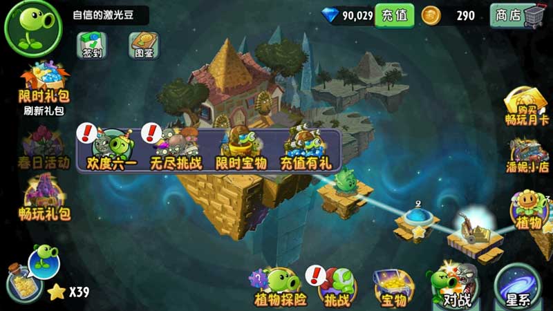 六一儿童节,不仅对小朋友们是个欢乐的节日,越来越多的大朋友们,也开始在这一天,放下生活中的烦恼和压力,变身无忧无虑的大儿童。这一次,《植物大战僵尸2》也为大小朋友们定制了专属的六一活动以及丰厚的奖品福利;在这个即将到来的童真节日里,让我们在游戏中,找回久违的轻松和快乐! 宝箱任性抽,等你来挑战! 本次安卓《植物大战僵尸2》v2.1.0版本中为各位大小朋友们准备的六一活动中,首推的就是专属于六一儿童节的大通关活动!活动时间从5月27日0:00开始,持续2周,到6月9日0:00结束;这次活动为大家准备了7个全新的传送带关卡,金币、钻石、植物碎片、挂件碎片、装扮碎片、完成植物等等都藏身于关卡宝箱中,;运用你的聪明才智,开挂升级,打败僵尸大军,就能获得梦寐以求的宝箱奖励哟! 充值有礼、限时宝箱开启全新惊喜 除了六一专属大通关外,充值有礼、限时宝箱也有新植物惊喜亮相。整个活动接档大通关活动,从6月8日持续到 6月28日结束; 在此活动期间,参与限时宝物活动或是在充值有礼活动中进行充值,即可获赠萌萌哒的“甜薯”,以及霸气侧漏的大嘴花,它们将有机会加入你的植物“伐木累”,与你一起大战僵尸,拯救“世界”。 了解更多相关信息,请前往http://www.yzz.cn/ku/jiangshi2 |