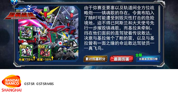 《SD敢达强袭战线》是以超人气动漫《机动战士敢达》为主题,万代南梦宫倾力打造的3D动作手游。在敢达系列作品中,SEED系列一直以来是最具有人气的作品之一,而作为在《机动战士敢达SEED DESTINY》中所登场的机体与角色,诸如强袭自由敢达、无限正义敢达以及它们的驾驶者基拉·大和及阿斯兰·萨拉等也都是颇具人气的机体和角色。在《SD敢达强袭战线》之前的版本中,还曾经推出过名为“镇魂歌”主题副本,作为SEED的主题副本,“镇魂歌”深受玩家们所喜欢,而如今,它将重新归来,在更新后,这一热门主题副本将重新上线! 由于弥赛亚要塞以及轨道间全方位战略炮——镇魂歌的存在,令奥布陷入了随时可能遭受到毁灭性打击的危险境地。迫不得已阿斯兰和大天使号先行一步摧毁镇魂歌,而基拉来牵制。挡在他们面前的是驾驶着传说敢达,决意与基拉做个了断的雷,以及与基拉曾有一面之缘的命运敢达驾驶员——真飞鸟。快来游戏中亲自体验一下这惊心动魄的精彩剧本吧! 《SD敢达强袭战线》是以超人气动漫《机动战士敢达》为主题,万代南梦宫倾力打造的3D动作手游,传承自主机游戏的质感和操作体验。携全系列人气机体、美女机师疾驰而来!游戏好玩易上手,融入了战队养成、羁绊搭配、远征模式、编年史副本、大规模ACE战等丰富玩法,让你快速融入敢达世界享受战斗的快感! 了解更多相关信息,请前往http://sy.yzz.cn/ku/sdgan/ |