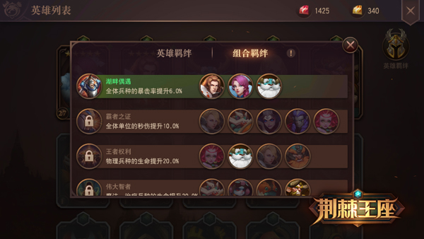 网易3D魔幻策略手游《荆棘王座》正在进行“终极对决”删档测试,本次测试新推出的全新玩法诸如大师赛、邪神狩猎等均受到了玩家的好评。除了玩法,本次测试游戏对诸多系统也进行了调整,例如本次新增加的英雄羁绊设定,让玩家的各个英雄都变得重要起来,正所谓多多益善。 【英雄羁绊强力助威】 本次为英雄增加的“羁绊”,让每个英雄对于整体阵容的属性能力都有了不同层面的贡献。英雄羁绊分为“英雄个人羁绊”和“英雄组合羁绊”。在个人羁绊中,每个英雄都有其特定的羁绊效果,例如兰斯洛特能为本方物理兵种提升伤害属性,而贞德能带来本方全体兵种暴击率的提升。而随着每个英雄升到每个品阶满星时,可获得的羁绊效果还会有显著提升。 除了单个英雄的个人羁绊属性外,特定英雄之间组合也能激发出组合羁绊效果。例如玩家同时拥有兰斯洛特、梅林和奥布朗,可激活组合羁绊“湖畔偶遇”,全体兵种的暴击率将提升。和英雄个人羁绊类似,玩家组合内所有英雄均提升至每个品阶的满星状态时,可获得组合羁绊效果的显著提升。 【旅馆升级,英雄自助选择】 英雄羁绊的推出使得每个英雄都拥有十分重要的作用,尤其是特定英雄组合的选择,对于提升战斗力的作用越来越明显。适应这一变化,游戏内英雄获取方式也进行了调整,从原来旅馆随机抽取,变成了抽取和直接购买相结合的获取方式。 玩家可以在旅馆内使用“英雄号角”直接兑换列表中的英雄,列表中的英雄每天5点会刷新,玩家也可以选择花费一定数量的金币来快速刷新列表英雄。“英雄号角”可以在游戏内的各个活动、任务玩法中产出,当“英雄号角”不足时,玩家可以选择使用相应数量的黄钻进行补充购买。 此前的“普通宴请”和“豪华宴请”仍然被保留,觉得自己“欧气”足够多的,也可以来尝试哦! 关于《荆棘王座》: 荣耀觉醒,向王座出征!《荆棘王座》是一款西方魔幻题材的3D策略手游,致敬经典,创新成长!游戏中您将化身为代表荣誉与正义的传奇领主,肩负神圣荣耀使命,谱写魔幻史诗壮歌,为推翻邪恶的统治者,建立理想中的国度,英勇征战!玩家可策略布阵,妙夺先机;也能即时操作,爽快击杀!坐拥华丽城池,驰骋宏大壮丽大地图,拓荒养成;还将体验军团争霸,攻城略地的荣耀大战!策略与激战并存,乐趣升级! 了解更多相关信息,请前往http://sy.yzz.cn/ku/jjwz/ |