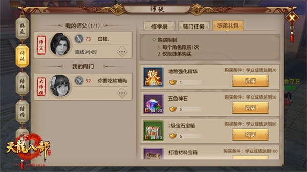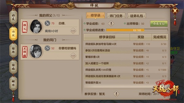 十年经典,金庸正版授权手游《天龙八部手游》现已龙腾公测,传承端游核心特色玩法,融入多种手游创新玩法,原汁原味的正宗金庸武侠世界等你来体验!日前,网络上再现有才玩家自制神作,全新视频作品《王不二江湖历险记》开始连载。在推出的第一期内容中,讲述了初涉江湖的“王不二”屡遇“惊喜”,并最终选择了拜师,来提携自己闯荡江湖的故事。 王不二江湖历险记 少侠,你需要一位师父 《天龙八部手游》龙腾公测现已开启,群侠重聚,再战江湖!游戏火爆的同时,不少有才玩家以游戏为题材进行了相关创作,其中《王不二江湖历险记》正是这样诞生的。在第一期作品当中,丐帮弟子“王不二”初次踏足江湖,并许下了“要成为称霸江湖的男人”。之后遭遇了诸多有趣的事情,如邂逅神仙姐姐却出现了神逆转,问路的时候遇到温柔小姐姐,被送了免费回城。最终“王小二”决定要拜师,并在游戏中找到了女师父。故事在这里戛然而止,拜师之后的“王小二”还会有什么样的奇遇,期待下一期的作品。 游戏师徒系统玩法介绍 师徒携手闯荡江湖 初入江湖者,若能得一名师庇护,则行而无忧。战之必胜。在江湖中享有盛名之人,若能收得二,三贤徒,则可以桃李满天下,开宗立派,又是一番乐趣。《天龙八部手游》的师徒系统,正是为每一位萌新和大侠提供了一个拜师收徒的平台。 玩家等级在19到44级之间,可以寻找50级以上的玩家,进行拜师学艺。在师徒关系缔结之后,师徒双方通过完成修学录中任务,可以获得学业成绩进度。学业成绩影响出师礼包的档次,徒弟学业成绩达到0,30,50,70,90时可以获得不同的出师礼包奖励。学业成绩越好,徒弟出师时,师父获得的奖励也就越好。不仅如此,每天徒弟在线时,师父还可以给徒弟发布师门任务,徒弟完成后,可以获得高额的经验奖励,师父可以获得铜币和英雄馈礼的奖励。 桃李不言下自成蹊,《天龙八部手游》师徒系统中,给予了徒弟给师父“打分”的权力——徒弟在30/40和出师时能对师父教学进行教学反馈,教学反馈会影响师父的出师奖励。徒弟出师后,师父还可以获得一定的师德,师德可以升级师父档次的称号,中级师父就可以收两个徒弟了,师父的师德称号越多,可以收的徒弟数量也就越多,真正的做到了“桃李满天下”。 师徒齐力能断金,在生活工作中如是,在《天龙八部手游》中也同样如此。拜师能让少侠在游戏中迅速成长,达到事倍功半的功效,收徒也能让大侠在提携新人的过程中多了许多乐趣。 关于《天龙八部手游》 金庸正版授权,《天龙八部》端游原班人马倾心打造,完美传承端游核心特色与经典玩法。游戏以Unity5引擎打造真实3D视觉盛宴,再现聚贤庄、珍珑棋局、琅嬛福地等知名场景,更有乔峰段誉王语嫣等英雄角色指点传世神功,四大经典门派,远攻近战、刺客治疗各具特色,珍兽神器、装备打造、自由交易玩法丰富,还有行酒令、运镖、凤凰古城等快意帮派玩法,营造出一个荡气回肠、快意恩仇的热血武侠世界,完美呈现金庸笔下最宏大的天龙江湖! 了解更多相关信息,请前往http://sy.yzz.cn/ku/tlbbsy/ |