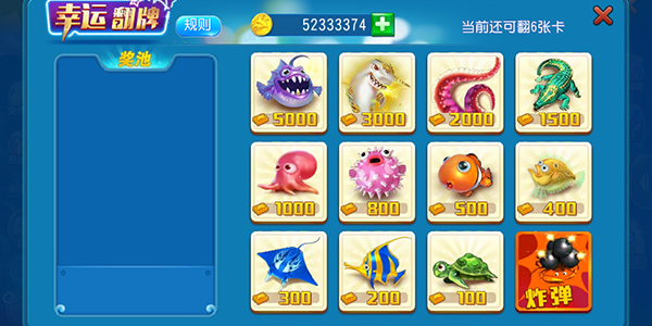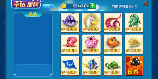 《海龙王》是一款经典火爆的实时街机捕鱼游戏,游戏里面添加的商城夺宝功能一推出就深受各位玩家的喜爱。很多玩家都习惯了在金币场捕鱼掉券然后去商城兑换话费、京东卡、手机等商品,那么除了老老实实窝在金币场打鱼获积分券,就没有其他快速获得积分券的途径吗?《海龙王》新推出的翻牌夺积分券功能,玩家只要手指动动,上千上万张积分券就可以轻松拿到手。 普通翻牌模式:普通玩家每天可以翻一次牌,每翻一次花费30万金币。总共12张牌,积分券总数为 14,800张,每次可翻六张,最多可以获得14,200张。VIP玩家从VIP2开始,翻牌次数会随着VIP等级的升高逐渐增加,一天最多可以翻9次。 VIP翻牌模式:VIP1和VIP3的玩家每天可翻一次牌,每翻一次花费100万金币,共12张牌,积分券总数为43,500张,每次可翻六张,翻牌最多可得42,300张。从VIP5开始,翻牌次数会随着VIP等级的升高逐渐增加,一天最多可以翻8次。 了解更多相关信息,请前往http://sy.yzz.cn/ku/hlhw/ |