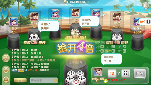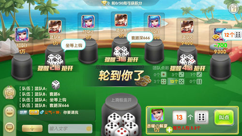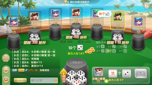 盛夏巨献,劲爆大话骰社交手游——《色子王》火爆来袭,挑战真人秀,还原风靡夜店酒吧的骰子游戏!摇骰盅,猜骰子,各种套路任你施展,让你足不出户,告别寂寞,完美体验酒吧,KTV欢乐氛围!《色子王》操作简单,轻松上手,通过手机重力感应来摇骰子,搭配夜店酒吧刺激万分的配乐和巨额奖池,赋予玩家身临其境的代入感。多人对局,吹牛摇骰,全靠演技! 除了个人摇骰智斗,更有全新团战等你来带队,今天就带来了全新团队模式玩法,与广大网友组队智斗,乐趣翻倍,惊险翻倍! 团队玩法中分成了红蓝两队,可以透视队友的手牌,要时刻留意团队点数喔。开局时发现队友中哪个点数较多,则可提醒其他队友摇点,试试能否摇到相同的点数,这样则可使队伍的胜算更大呢! 当发觉我方胜券在握时,而自己抢开骰盅倍数较低时,则可提醒队友抢开骰盅,这样胜利后可获得更高的奖励呢! 《色子王》个性骰盅,真人语音,方言随心换!搞怪互动,玩出花样,趣味多多,激情无限!团队模式开心社交,刺激万分;丰厚无比的巨额奖金,等你来带队挑战!在游戏中寻找默契搭档,斗运气,说大话,拥抱激情,好运一整夜! 了解更多相关信息,请前往http://sy.yzz.cn/ku/szw/ |