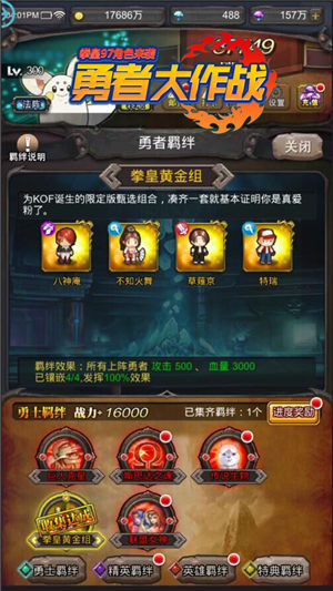 你的童年格斗偶像来了!SNK正版授权的人气角色八神庵今日正式入驻《勇者大作战》!在这里,你不仅能重温八神庵的必杀技八稚女,还能再次见证八神庵与草薙京的宿命对决!你想360°无死角的了解八神庵吗?《勇者大作战》八神庵勇者独家秘籍马上奉上~ 《勇者大作战》官网:http://yongzhe.hulai.com/ 【八神庵职业属性全揭秘】 虽然八神庵的舞台从格斗场变换到了《勇者大作战》,但他仍是万众瞩目的存在。在《勇者大作战》目前的版本中,八神庵可谓是品质最高、综合属性最优的勇者之一。作为SSS+的狂战士,八神庵的战斗能力出众,远超同品质普通勇者,其初始属性为战力:22587;血量:1982;攻击:1169。 技能方面,八神庵将狂战士变态的吸血能力展现得淋漓尽致。具体技能如下(Lv.1): 八稚女:给予敌方最靠前2个英雄282%攻击力的伤害并恢复自身115%攻击力的生命值 [特]初级.狂战士专精:对狂战士职业的领悟到达新的高度,攻击力+343、生命值+691、速度+344 [特]体质成长:永久增加自身1975生命 [特]中级.狂战士专精:对狂战士职业的领悟到达新的高度,攻击力+441、生命+889、速度+444 [特]碗力成长:永久增加自身1355攻击 [特]高级.狂战士专精:对狂战士职业的领悟到达新的高度,攻击力+888、生命+1783、速度+889 [特]大师.狂战士专精:对狂战士职业的领悟到达新的高度,攻击力+1922、生命+3857、速度+1924 【4步玩转特典勇者八神庵】 第1步:获得八神庵 八神庵和特瑞、草薙京、不知火舞一样都是限时特典勇者,均无法从契约之门、勇者合成中获得,只可通过碎片合成得到。八神庵的碎片可在特典商人处利用特典币兑换。而特典币可通过特典任务免费获得。只要每日完成特典任务,兑换到4个SNK正版授权勇者不是梦! 因为八神庵为限时特典勇者,当活动结束后,除了已经获得的玩家仍能从勇者酒馆中刷新出,其他玩家将无法再获得。如此限量又强力的勇者,你不心动吗? 第2步:安排上阵 勇者上阵布局可以说是《勇者大作战》的核心玩法之一,而作为限时特典勇者的八神庵自然也可以上阵战斗。当玩家通过八神庵[碎片]合成得到八神庵后,就可安排其上阵战斗。身为狂战士的八神庵在《勇者大作战》中拥有极高的吸血能力,伤害越高吸收的血量越多。变态的吸血能力让八神庵的续航能力超群。 第3步:激活特典头像 八神庵除了能上阵战斗,还能为玩家带来多种福利。在特典头像中,只要玩家连续7天领奖,就能将其设置成头像,甚至还能为全体勇者永久增加3%的基础属性。八神庵特典头像也是限时活动呦,活动结束后将无法再激活。 第4步:镶嵌勇者羁绊 随着八神庵的入驻,《勇者大作战》拳皇黄金组的羁绊也随之圆满。当玩家将特瑞、草薙京、不知火舞、八神庵同时镶嵌到羁绊中时,即可获得攻击+500、血量+3000的属性提升。是不是很激动呢~ 宿命对手草薙京、八神庵,人气高手特瑞,性感女神不知火舞。SNK正版授权人气角色已全部入驻《勇者大作战》,童年偶像与动漫明星的大战一触即发!还不赶紧打开官网下载游戏,与格斗偶像一起登上新舞台! 了解更多相关信息,请前往http://sy.yzz.cn/ku/yzdzz/ |