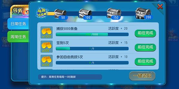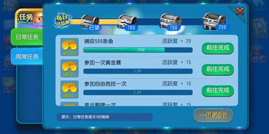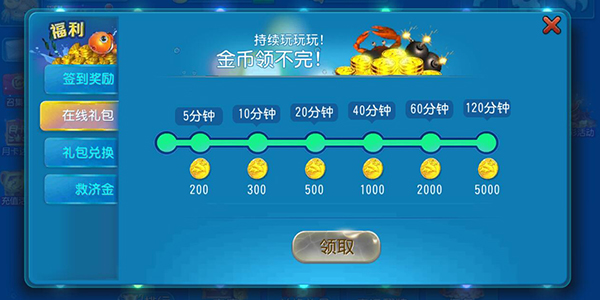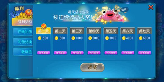 有玩家表示,《海龙王》捕鱼的金币用完了,但是又不想充钱,还能不能继续愉快地玩下去?当然可以啦,接下来和小编看看游戏里面有哪些可以迅速获得金币的好方法。 签到礼包 《海龙王》捕鱼第一天签到可以领取500金币,第二天可以领取800,连续签到领取到的金币更多哦! 在线礼包 在线5分钟就可以领取200金币,在线10分钟可以领取300金币,对于喜欢捕鱼的玩家来说,这点时间轻轻松松就过去了,完全没有压力。 日常任务 分为两个部分,一个是任务金币,每完成一次任务,都可以获得一次金币奖励;另一个是活跃度,每个任务后面都有一个活跃度数值,任务不同,其活跃度数值也不同。完成当天所有任务金币礼包是10000,活跃度金币礼包是15000,两种奖励可以叠加领取。 周任务 和日常任务一样分为两个部分,一个是任务金币礼包,一个是活跃度礼包。这两种奖励同样可以叠加领取。 救济金 每位玩家每天的金币少于1000都可以领取1000金币,VIP1可以领取两次,月卡达人可以领取2000金币。 了解更多相关信息,请前往http://sy.yzz.cn/ku/hlhw/ |