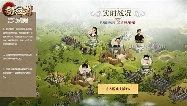 今日,由当红花旦杨幂代言,天美工作室群自研的腾讯首款战争策略手游《乱世王者》正式开启全平台不限号。同时,《王者荣耀》强势助力《乱世王者》不删档,《乱世王者》新注册玩家可同时领取两款游戏礼包,每日登陆并且达到一定游戏等级也可同时领取两款游戏礼包,让每一位玩家尽享荣耀。游戏代言人杨幂的专属福利活动,也将于近日重磅上线。 《乱世王者》手游全平台不限号的启动,意味着“乱世求生战”活动迎来全民参战时刻。目前,“斗鱼”一姐冯提莫正遭遇其他明星的轮番进攻,谁能帮助萌妹子躲过难关?即刻起,所有玩家都能进入明星们所在的服务器,参与这场声势浩大的求生战活动——想要英雄救美的玩家,机会就在眼前。 “美貌与智慧并重”杨幂倾情代言《乱世王者》 今日,腾讯首款战争策略手游《乱世王者》正式宣布:当红花旦杨幂成为游戏代言人!以“策略”为核心的《乱世王者》手游,与杨幂的超高双商不谋而合。杨幂向来以高智商、高情商的形象示人,无论是《真正男子汉》里的智商担当,《金星秀》里面对刁钻提问的机智化解,大幂幂总能显露出富有策略的一面。 与此同时,杨幂开设个人工作室签约潜力新星的养成技巧,以及凭借过硬的社交手段获取众多资源的方式,无不与《乱世王者》的核心玩法“养成”、“社交”深度匹配。江山美人,乱世烽火,大幂幂担任《乱世王者》手游的代言人,简直再合适不过了。接下来,游戏还将推出杨幂代言人专属的福利活动,玩家们拭目以待吧! 《王者荣耀》荣耀助力 多重豪礼赠送 活动期间:即日起至8月31日 为庆祝《乱世王者》不删档,天美工作室群旗下的超人气手游《王者荣耀》携手《乱世王者》打造“成乱世王者,领荣耀礼包”三重惊喜回馈活动。 第一重惊喜,新用户注册《乱世王者》(微信/手Q均可)即可获得《乱世王者》、《王者荣耀》两份游戏礼包;第二重惊喜,玩家每日登录《乱世王者》,即可获得1次100%中奖的抽奖机会,有可能获得《王者荣耀》曹操-超能战警皮肤,《乱世王者》神将曹操等8款惊喜大奖;第三重惊喜,玩家在《乱世王者》的王城等级达到5级、10级、15级,均能领取《王者荣耀》、《乱世王者》的珍贵游戏礼包,礼包内藏《王者荣耀》刘备-万事如意皮肤等惊喜。 新赛果“毒奶”局座遭淘汰 四位明星竞争升级 当前“乱世求生战”新赛况,赛前呼声最高的胜出竞争者“局座”张召忠祭出“因果律武器”把自己坑了,成为首位出局的明星玩家。与此同时,电竞大神五五开、斗鱼一姐冯提莫、奇葩说BB-KING肖骁、米果传媒CEO胡渐彪四位明星仍在乱世中激烈厮杀。据悉,为了发展自己的势力,四位明星都采用了联盟战略,使得竞争再度升级。 同时,所有的玩家都能进入明星所在服务器,去“偶遇”各大明星。玩家可以通过发展自身战斗力,去支援自家爱豆各种军粮以及兵力,甚至是去摧毁其他明星的城池。究竟形单影只的明星们面对潮水般的真实玩家行为,要如何自保呢?让我们拭目以待。 新惊喜主播系统 美女阵容再度升级 《乱世王者》手游不删档版本带来全新升级的主播系统,不仅增加数十位外型甜美、嗓音好听的美女主播,而且在主播系统中加入了时间预告、关注、贡献排行榜、礼物赠送等内容,全面满足玩家与美女主播“零距离”接触的愿望。现在起,玩家进入游戏就能找寻自己最爱的美女主播,通过文字聊天、送礼物、组建联盟等形式让感情升温。 新装扮全面焕新 主城也有“皮肤” 为满足玩家个性装扮,《乱世王者》手游不删档版本推出“皮肤”装扮功能。该功能划分“主城装扮”、“君主头像”两个方向。“主城装扮”功能在主城等级达到5级时开放,玩家使用装扮后大地图上的主城,以及内城的主城都会同步变换外观。 想要更换头像以达到隐蔽自己身份的玩家,可以通过更换“君主头像”来实现。玩家可以从预设的头像图库中自行选择头像底和文字进行拼接,形成自创内容,每位玩家都能创造出独一无二的君主头像。此外,皇帝、名城太守、被皇帝任命的官员可以使用独有的荣耀头像。 新玩法三分天下 联盟混战一触即发 全新玩法“三分天下”,是《乱世王者》手游不删档版本的全新联盟势力混战玩法。该玩法以联盟为单位,全服各大联盟需要选择加入三大势力的其中一方;通过击杀敌军、世界BOSS、特定野怪、攻占名城等方式为所在势力增加实力;让大家更进一步体验到联盟战争的乐趣和策略! 《乱世王者》手游全平台不限号现已启动,“乱世求生战”火爆进行中,想要与自家爱豆并肩作战,立即下载游戏吧! 了解更多相关信息,请前往http://sy.yzz.cn/lswz/ |