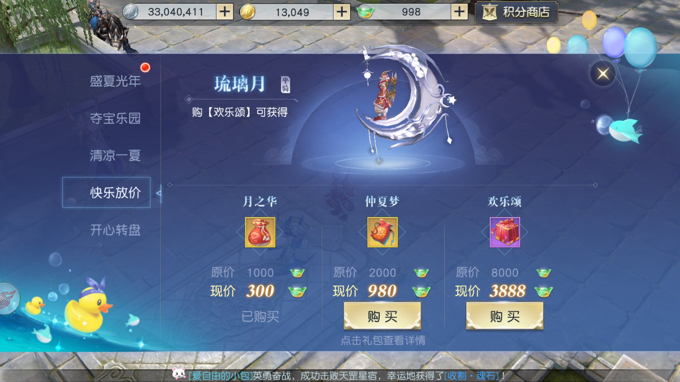 秋老虎凶猛,来网易东方幻想大作《镇魔曲》手游中消暑!即日起到8月22日为止,天命者们在游戏中均可以参与到盛夏光年、夺宝乐园、清凉一夏、快乐放价、开心转盘五大暑期活动之中!乐趣十足、福利多多,还有超值礼包折扣放送,陪伴天命者们度过暑假剩下的时光! 快乐放价,超值礼包福利丰厚 在暑期活动期间,《镇魔曲》手游为天命者们备下了三款超值礼包:月之华、仲夏梦、欢乐颂。全新坐骑琉璃月、造型头饰糯米糍、神兽锦囊等丰厚的福利尽数囊括,天命者们可以按需购买,物超所值!除此之外,天命者们还能获得“盛夏抽奖券”,参与到开心转盘活动之中! 通过开心转盘活动,天命者们能获得老冰棍、冰镇饮料等夏日冷饮,食用后将为天命者们提供更长的“清凉一夏”活动时间。此外还有全新背饰、琉璃月的升级版“神无月”、“清和月”等各类大奖,静待各位天命者带回家! 盛夏光年,手指轻点奖励到家 除了大“放价”的超值礼包,《镇魔曲》手游还在活动期间为天命者们准备了无须动脑、只用躺在空调房里动动手指就能领取海量福利的活动:盛夏光年! 签到福袋、活动礼包、累计奖励……多种多样的奖励尽数奉上,银币、历练、各类珍稀道具应有尽有,天命者们只需要手指轻点,就能把它们收入囊中!如果哪天错过签到也不要紧,动动手指就能轻松找回,让天命者们伴着“空调wifi西瓜”过一个惬意舒心、福利满满的暑期! 戏水、夺宝,轻松游戏欢度暑期 炎热的暑期,天命者们最爱的活动当然少不了戏水!在“清凉一夏”里,《镇魔曲》手游在天阙王城、明光城、云都、星天监四个地方修建了众多戏水池,天命者们可以在其中漫步、游泳、跳舞……享受清凉之余还能收获挂机经验,一举两得! 戏水累了,天阙王城还有一处神秘乐园全新开张!掷骰子、拼运气、合理运用恶作剧卡片,在这场充满童年记忆与欢声笑语的“夺宝大战”中取得胜利,将神兽元魂、璀钻、明光玉等珍稀道具带回家吧! 超值礼包大放价,丰富活动享清凉!《镇魔曲》手游暑期活动正如火如荼进行之中,天命者们赶紧抓住夏天的尾巴、加入这场中州大地的全民狂欢之中吧!超多的福利,正在等你! 【镇魔曲手游画廊】 拍摄者:李嫣然 服务器:龙凤呈祥 关于《镇魔曲》手游: 《镇魔曲》手游由镇魔曲端游原班人马打造,采用全面升级的自研NeoX2.0 引擎,实现电影级次世代画质,六大职业18个战斗流派,战法牧经典铁三角,MOBA“双摇杆”操作让战斗变得有意思,开创即时制MMO战斗新纪元!30多个野P战场,想战就战!点对点真人自由交易,海量个性时装、激萌灵兽,各种逗比表情花式互撩。《镇魔曲》手游——“原汁原味”的MMO乐趣,满足你对顶级MMO的所有幻想。 了解更多相关信息,请前往http://sy.yzz.cn/zhenmoqu/ |