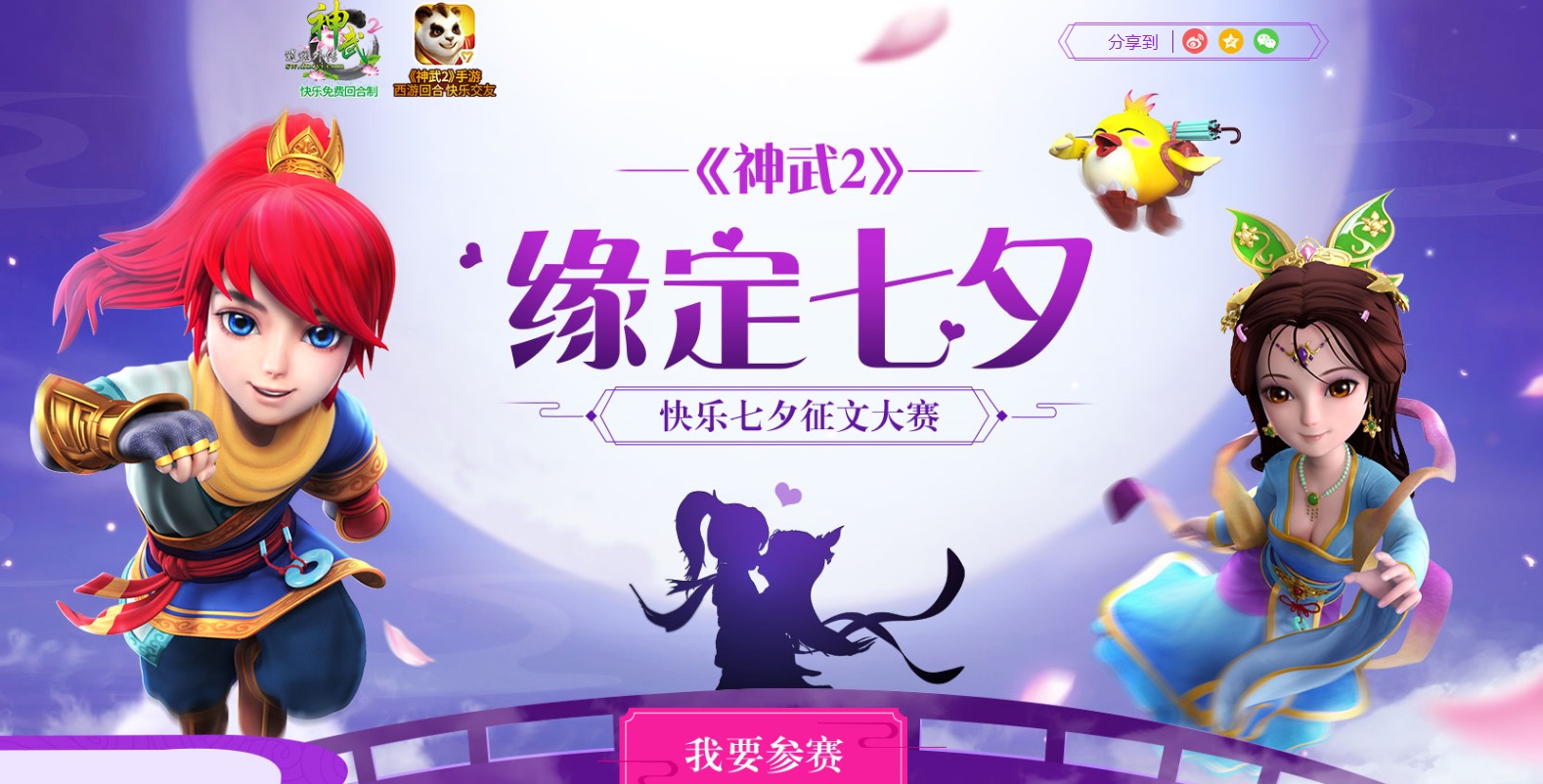 缘起神武2,情定七夕节。,在神武2中你和你的他(她)有着什么刻骨铭心的故事呢?在本次比赛中,大家需要分享自己在神武2中和你心里的那个他(她)的故事,人气最高的故事的玩家可以获得专属称谓+限量版手办以及周边。 《神武2》手游夏日狂欢季正式开启!暑期五大活动天天不重样,萌宠礼包限时领取,回归老玩家还有双人坐骑独家体验特权!红包雨震撼降临,玩家见面会与你不见不散!青春无畏,《神武2》手游陪你一夏天!《神武2》手游玩法丰富,系统创新,便捷的即时语聊、智能离线保护、自动组队等功能一定让你爱不释手!《神武2》手游还是一个强大的娱乐交友社区,选美赛,好声音赛,好友秀互动,游戏交友两不误。西游回合,快乐交友,尽在《神武2》手游。 了解更多相关信息,请前往http://sw.yzz.cn/sy/ |
