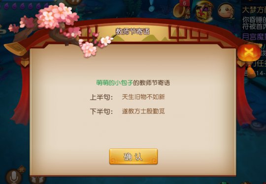 人在江湖飘,离不开师门的支持和师父的教导。九月金秋时节,教师节也即将来临。送上鲜花,相信是很多玩家表达对师父尊敬的第一选择。《梦幻西游无双2》将于9月8日-12日开启教师节活动,助各位玩家为师父送上节日的祝福。下面就来为各位玩家介绍一下本次教师节活动都有哪些内容吧! 花香满园,为师父种下百岁花 活动期间,各位玩家可在各自门派的门派师傅处领取百岁花的种子,并可在门派地图内种下百岁花。老师常被比作辛勤的园丁,在教师节为师父送上自己亲手种下的百岁花,也是对师父最好的祝福了。成熟的百岁花在活动期间将一直留在门派地图中,满园的百岁花,也是一种别样的美景! 送上祝福,师父回赠神秘礼物 百岁花的种子虽已种下,但没有悉心的照料也难以开出花朵。每隔一段时间,各位玩家可消耗一定的材料为自己的百岁花浇水,累积浇水三次后,百岁花便会成熟,此时也可写下对师父的祝福寄语。但是,若当天的浇水次数不足3次,百岁花将在当天的24:00被清除。 收到百岁花和祝福寄语的师父十分高兴,还会回赠给玩家神秘礼物,想知道究竟是什么礼物吗?快来游戏里亲自体验一番吧! 游园赏花,还可获得随机奖励 花香满园,同样也是游园赏花的好机会。玩家在门派地图中可以欣赏其他玩家种下的百岁花,并阅读他们赠与师父的祝福;同样,自己种下的百岁花也能被其他玩家欣赏。不论是赏花,或是自己的花被其他玩家欣赏,都能随机获得奖励!赏花的同时还能拿奖励,这么好的事情你还不心动? 既能为美化师门做贡献,又能送上对师父的节日祝福,最重要的是,还有丰厚的奖励可以领取!快来《梦幻西游无双2》参与教师节活动,领取你的百岁花种子吧! 了解更多相关信息,请前往http://www.yzz.cn/sy/mhws/ |