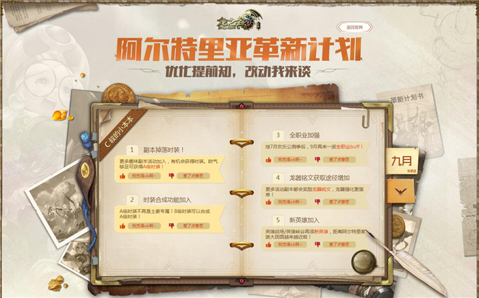 为了带给冒险家们更好的游戏体验,《龙之谷手游》将开启“阿尔特里亚革新计划”,于9月新版中带来副本时装掉落、时装合成功能、全职业加强、龙器铭文获取途径增加、英雄峡谷新英雄加入5大内容。目前,《龙之谷手游》官网已上线阿尔特里亚革新计划专题页面,玩家前往即可提前知晓新版本的优化改动之处,还可点赞告知C叔自己的看法哦。 时装合成功能即将上线 人人都可得A级装 在《龙之谷手游》中,副本是游戏的核心玩法之一,包含巢穴、龙穴、深渊等常规副本以及限时开放的活动副本。不同的副本玩法不尽相同,难度也各不一样,带给玩家极具特色的PVE玩法之际,还会提供金币、道具等奖励,深受冒险家们喜爱。随着“阿尔特里亚革新计划”的曝光,备受玩家喜爱的活动副本将进行全面优化——以趣味性的新鲜体验为主玩法,并将产出全新资源时装,欧皇玩家还会获得A级时装! 不仅如此,《龙之谷手游》还将在新版本中上线时装合成功能。届时,玩家通过活动副本获取时装后,若对时装不满意,便可通过时装合成功能合成A级时装。妈妈再也不用担心自己在阿尔特里亚没有A级时装穿啦! 龙器铭文产出途径增加 阿尔特里亚再添新英雄 一直以来,由于铭文产出途径少,《龙之谷手游》中的龙器强化是不少冒险家难以攻克的难题。为了解决这一问题,龙器铭文获取途径增加现已加入“阿尔特里亚革新计划”豪华午餐,游戏将会在更多的活动副本奖励中奖励随机铭文或本职铭文,满足玩家们对龙器强化的需求。 另一方面,《龙之谷手游》英雄战场和英雄峡谷两大玩法中,也将在后续版本中增加1至2个新英雄,带给玩家更好的竞技体验。最后,便是玩家们期待已久的职业加强信息了。据悉,在9月新版本中,战、法、牧、弓、学者、刺客六大职业都不会进行削弱,迎接他们的将是buff级别的加强。至于职业buff究竟孰多孰少,敬请期待全新版本的到来! 《龙之谷手游》阿尔特里亚革新计划现已正式登陆游戏官网,快去看看C叔的小本本里写了哪些内容吧。此外,游戏还将针对发展和强化消耗的资源数量做出减负调整,十分值得期待! 了解更多相关信息,请前往http://sy.yzz.cn/lzgsy/ |