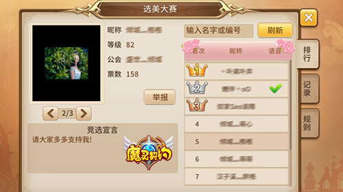 最美的不是下雨天,是曾看到你照片的那片墙……话说《魔灵契约》每个月都会有一次选美大赛(欲知详情请进入游戏),每到这个时候,游戏里的一大波妹子们就会疯狂晒照竞选最美玩家,场面几乎控制不住!你想不想一睹如此盛况呢?听说九月份的选美大赛已经开始了,还等什么呢? 【选美大赛】 又到一月一度的《魔灵契约》选美大赛,小姐姐们可谓是各有奇招:御姐萌妹傲娇邪恶……各种风格都不在话下,而且虽说有部分小姐姐已经参加过竞选了,但是每次比赛她们还是会有不同照片出现啊!从来不带重复的啊!关键是个个都很美根本没法选啊!一大波妹子美图养眼,就问你心动不心动! 【参赛条件】 然而《魔灵契约》的选美大赛并不是每个小姐姐都可以参加的。活动期间,等级在35级以上的女玩家才可以携带三张私人正面高清无码照报名参加竞选,而且系统将会审核参赛选手的语音、照片,确认选手为真实女性玩家才能通过审核(所以就算内心是个小公举,汉子们也是不能参赛的哦)。 【投票决选】 报名参加《魔灵契约》选美大赛的小姐姐们可以将自己的宣传单发散出去为自己拉票,因为活动结束后票数前十的玩家将可以获得很棒棒的奖励。而活动期间35级以上的玩家可以为自己稀饭的小姐姐投票,且每位玩家均有3次投票机会。PS:这部分玩家也可以给参赛选手额外赠送玫瑰,每朵玫瑰可以增加5票哦。 大大贴士:比赛结束后,票数前十的玩家照片还将显示在魔法圣堂照片墙,想要天天看到自己稀饭的小姐姐,那就加油啦!活动已经开始了,我只能帮你到这了!【推眼镜.jpg】 《魔灵契约》是一款华丽3D回合制魔幻类MMORPG大作,游戏内超过1000个英雄可以自由搭配,拥有多种奇特萌宠与卖萌头饰,靓丽的光效翅膀与威猛的飞行坐骑,独创魔阵碰撞,配合策略多变的英雄主动,被动,觉醒技能搭配以及数之不尽的培养体系任君选择,更有实时翻译成为文字的语音系统,极尽丰富的单人与组队玩法,多样化的游戏活动满足喜欢回合制玩家的各种需求!还等什么?赶紧召集小伙伴一起来玩吧! 了解更多相关信息,请前往http://sy.yzz.cn/ku/mlqy/ |