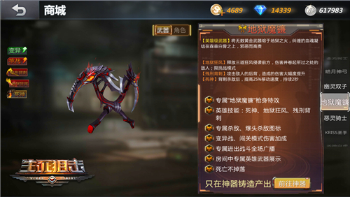 从地狱淬炼而出的近战武器——地狱魔链已经加入全新的神器工厂,地狱铸造,可以使用神器碎片铸造强力的武器的同时,从而获取英雄级武器地狱魔链。 地狱之火熔炼而成 黄金武器的精髓 地狱魔链,凶悍的名字和外形让见到他的玩家畏惧几分,血红色的气息从镰刀中缓缓流出,传说中将无数黄金武器使用地狱之火熔铸而出的终极英雄武器——地狱魔镰,拥有超高的伤害与攻击力的全新近战英雄级武器,武器纠结的血魂凝结在森森白骨之上,邪恶而又高贵。 魔神力量 专属技能体验不同快感 残刑背刺,地狱魔镰会偷偷收割敌人的灵魂,在敌人背后进攻时,会打出大量的伤害,几乎都是一击必杀,在偷袭敌人和追杀敌人的时候会非常地好用,不仅如此,在背刺的击杀敌人的时候,会触发地狱魔镰的另一个技能——死神。背刺的时候,会提高25%的移动速度并且持续两秒钟,可以让玩家更好的进攻与防守,这个是地狱魔镰PVP中较为强力的两个技能了。 另一个只有在PVE中可以使用,地狱狂风,向前方释放三道狂风,造成持续性伤害,并卷起所过之处的敌人。当然,英雄武器的通用的特权、图标和经验加成当然也是少不了的。 血魂凝铸 魔镰出击 地狱魔镰不仅是全《生死狙击》手游第一把近战英雄武器,而且是一把拥有与其他近战不同的双形态,一镰两用,非常实用。在不同的武器形态中,体现出的数据也会截然不同。战斗中可以随意切换形态,但是有一定的延迟,如果想要切换形态,一定要处于安全地区的时候再切换,不然敌方骚扰和进攻你,也束手无策。双持形态,左右各一把镰刀,左右手会交替轮流进行攻击,轻击攻速上会比较快,而重击伤害很高但是需要蓄力,需要一定的预判才能准确打出伤害。组合形态,则会变成一把超长的长柄镰刀,攻击距离远且威力巨大,但是机动性与攻速上远远不如双持形态。 了解更多相关信息,请前往http://sy.yzz.cn/ku/ssjjsy/ |